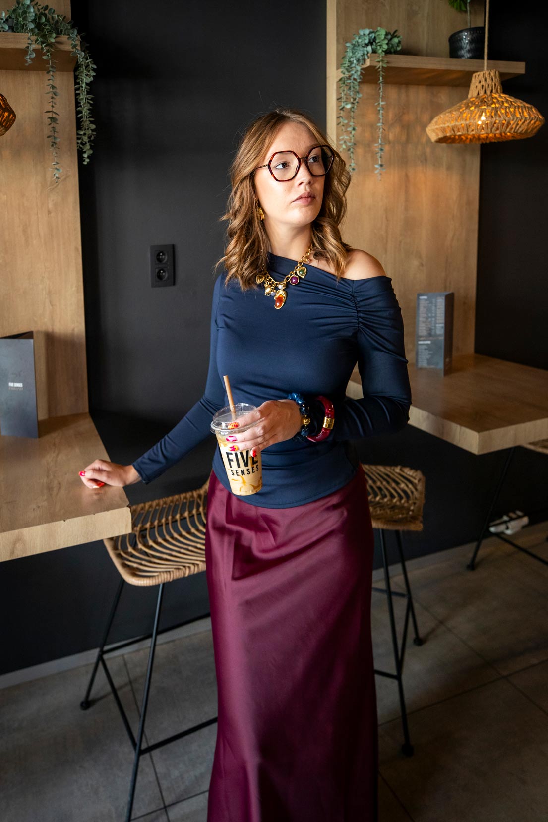 Blouse basique épaule dénudée taille unique, convient jusqu’au 40